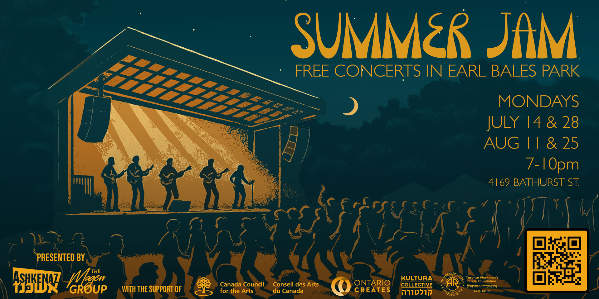 Ashkenaz Festival & Magen Group are returning to Earl Bales Park for the third edition of the Summer Jam FREE concert series, including FOUR exciting and eclectic double-bill concerts on alternating Monday evenings. Each concert will feature a Jewish roots performance, paired with a pop, rock or jamband tribute act, attracting inter-generational fans from across the musical spectrum. Bring a blanket or lawnchair, a picnic and beverages and enjoy amazing music in an idyllic setting with friends and family. Mondays will never be the same!